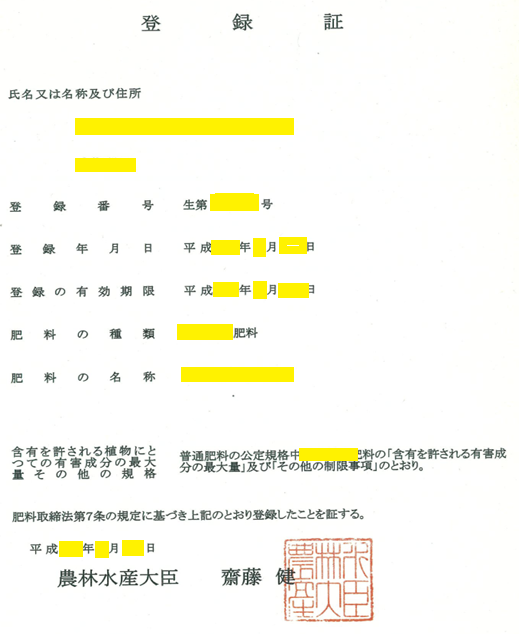 - 일본 정부가 정한 「일반 비료의 공정 규격」에 의거하여 등록 가능 여부를 알려드립니다.